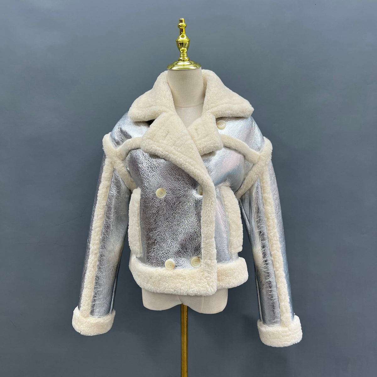 Μοντέρνο γυναικείο κοντό, σταυρωτό γούνινο παλτό Shearling