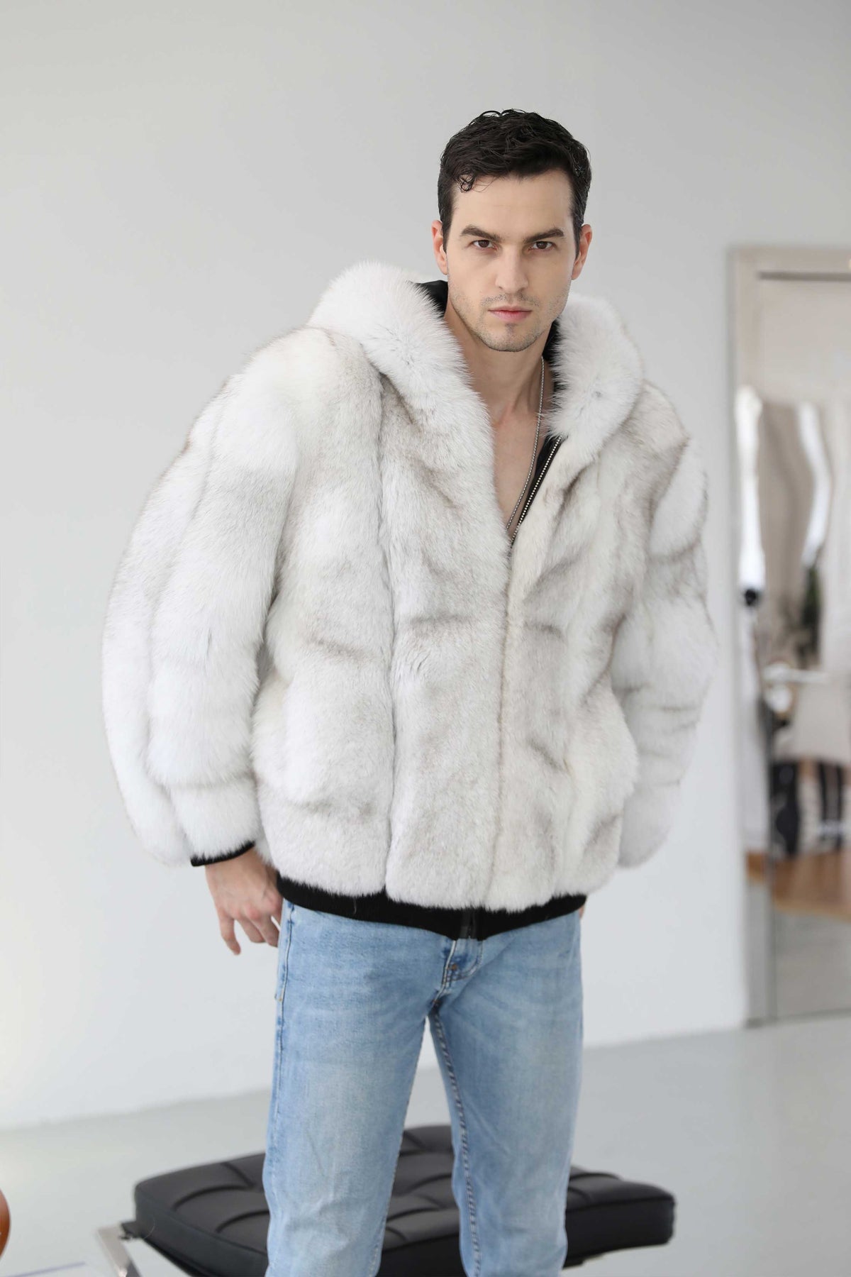 Men's Fashion Design Fox Leather Jacket Hood Casual Style Coat