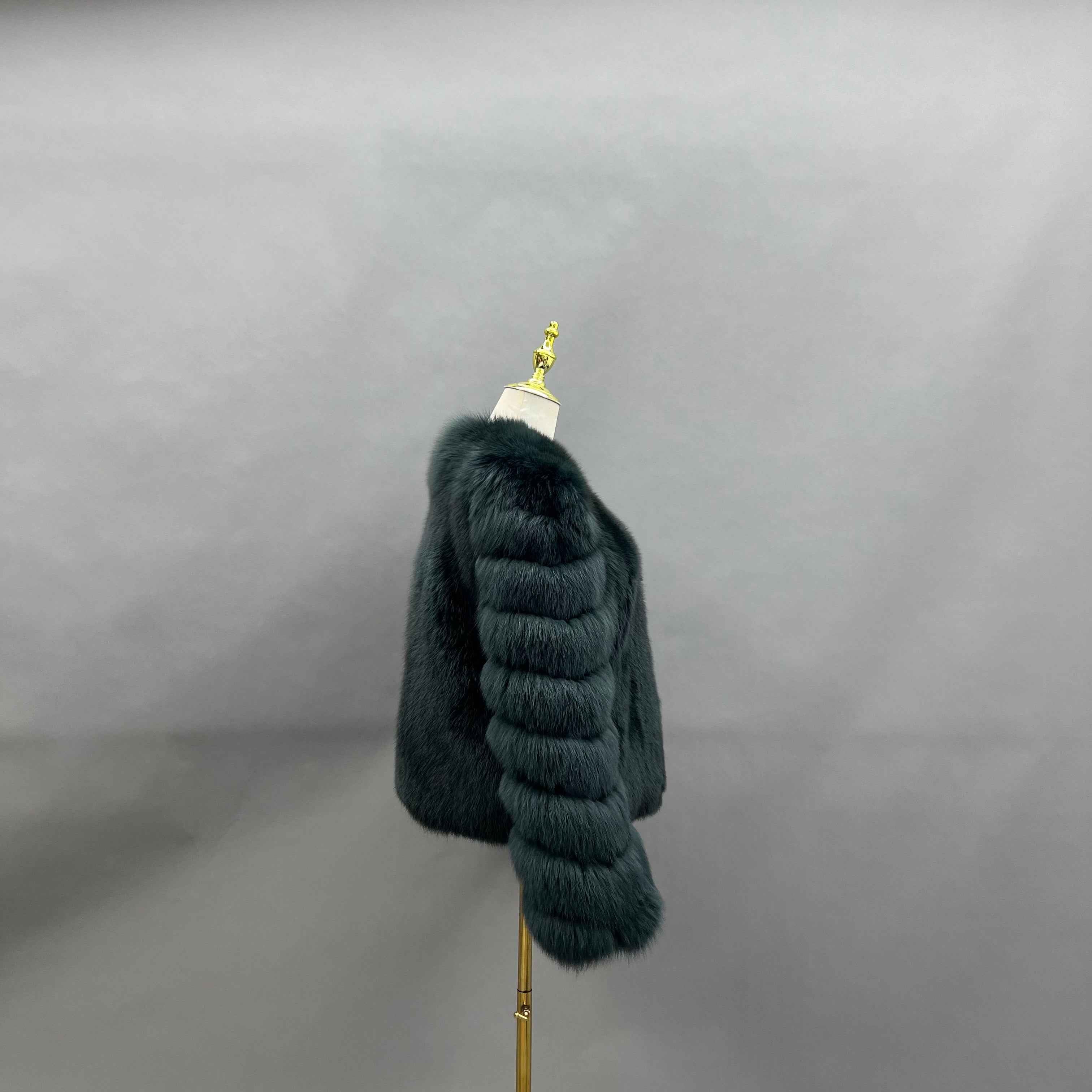 Luxury Red Fox Fur Jacket with V-Neck and Ribbed Cuffs – Short Women’s Winter Fur Coat