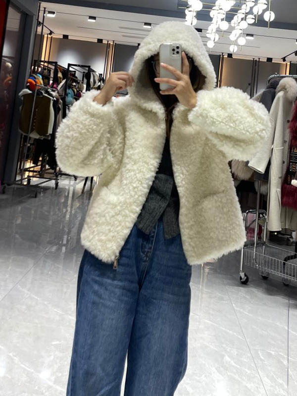 Faux Shearling Outerwear Coat Women's Elegant Hooded Faux Shearling Jacket