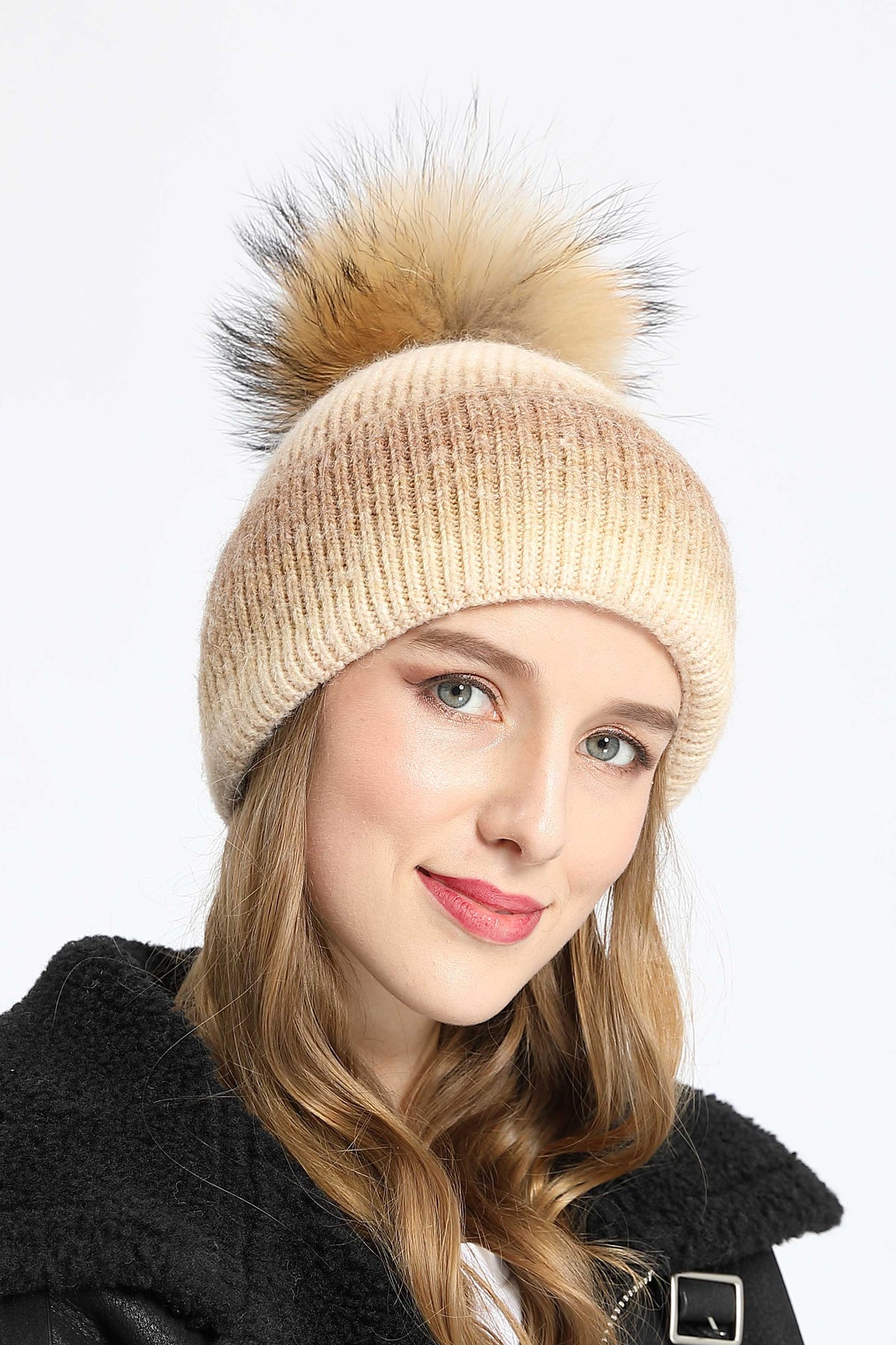 Gradient Wool Hat with Fur Pom Pom Women Hat