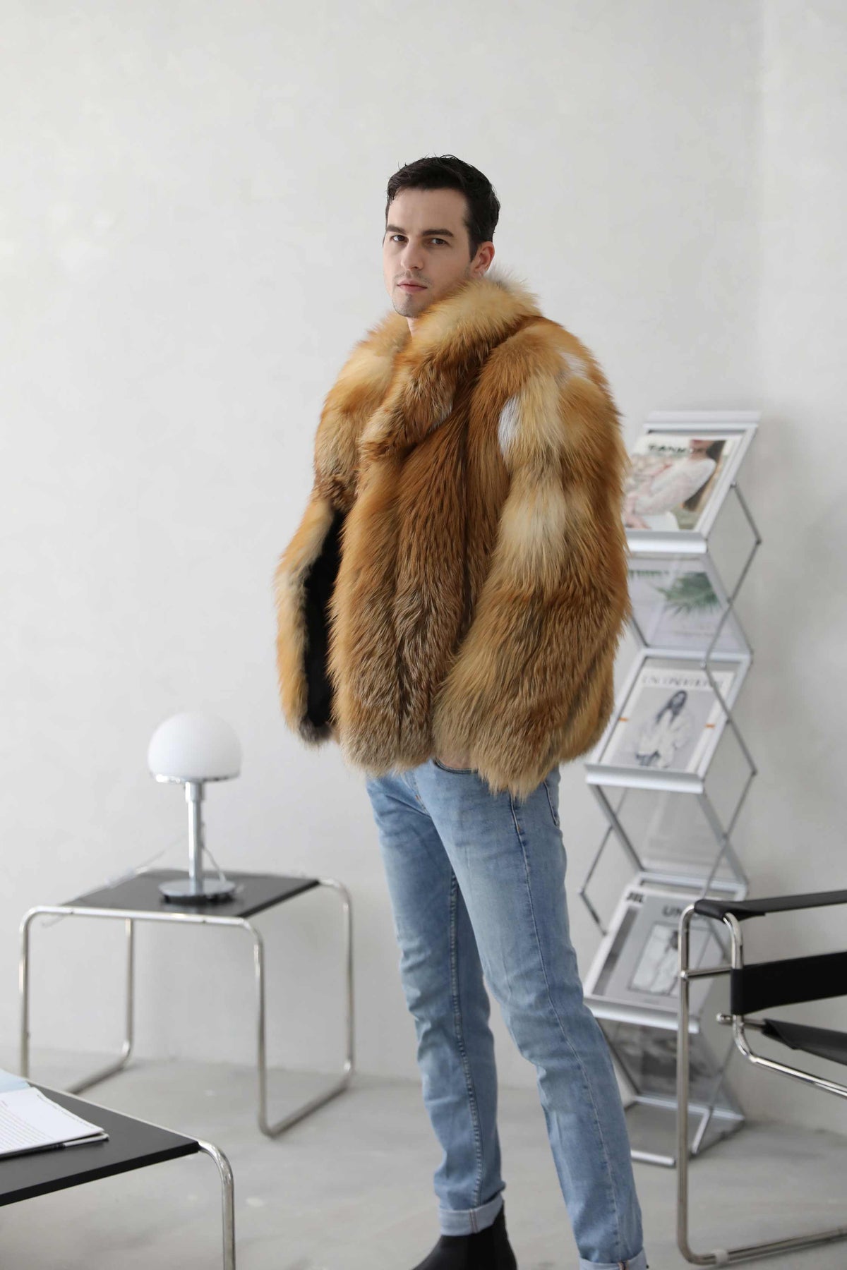 Men's Winter Fashion Regular Real Fox Fur Red Fox Coat
