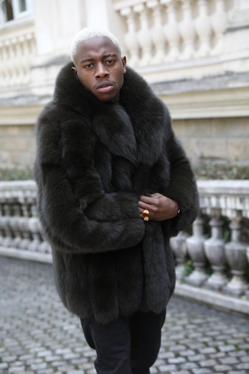Giacca da uomo in pelliccia di volpe blu a righe verticali