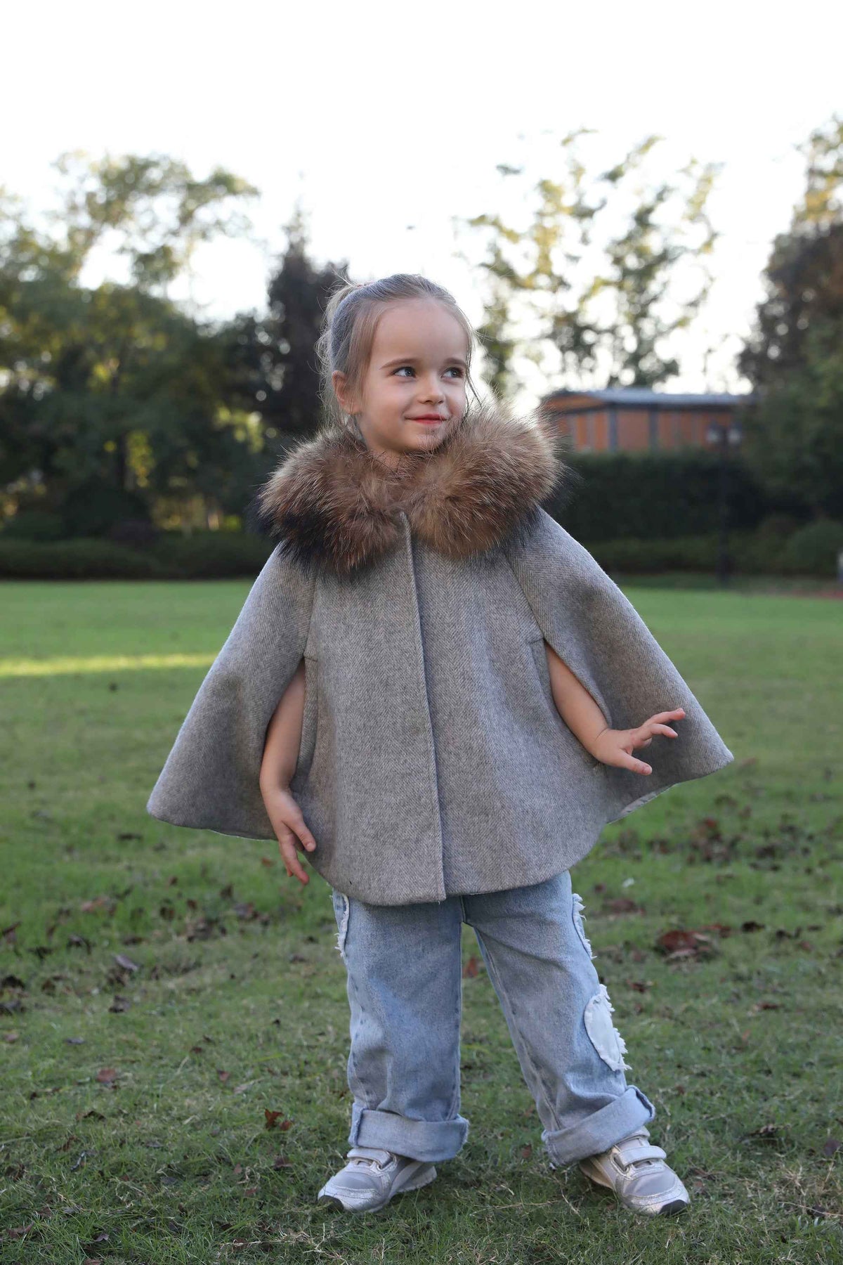 Mantello per bambini con bordo in pelliccia di procione