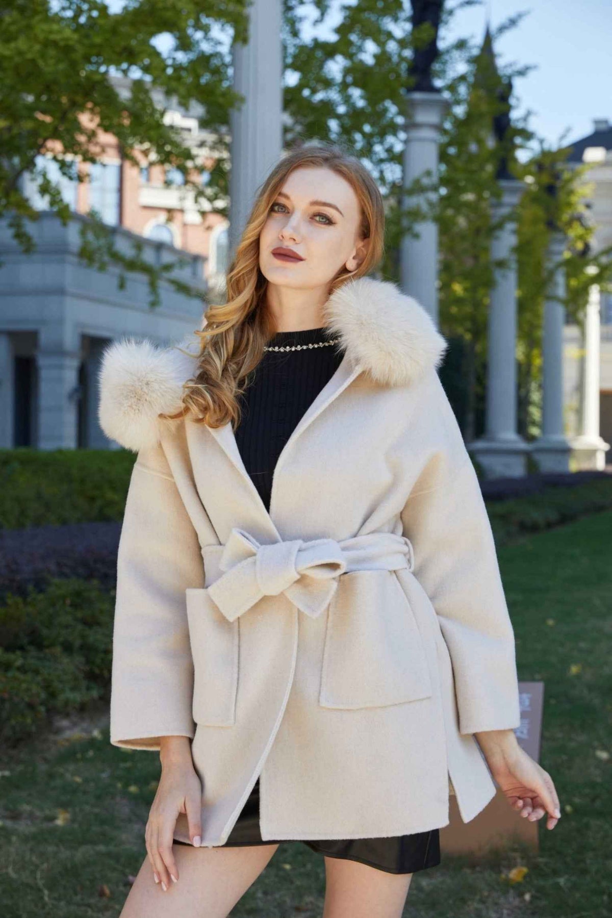 Double-sided Cashmere Mid-length Hooded Large Fur Collar Coat Women's Winter Coat