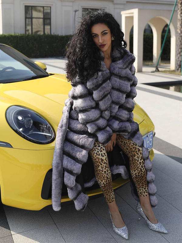 Eco Friendly Faux Fur Women's Casual Notched Collar Chinchilla Pattern Long Coat