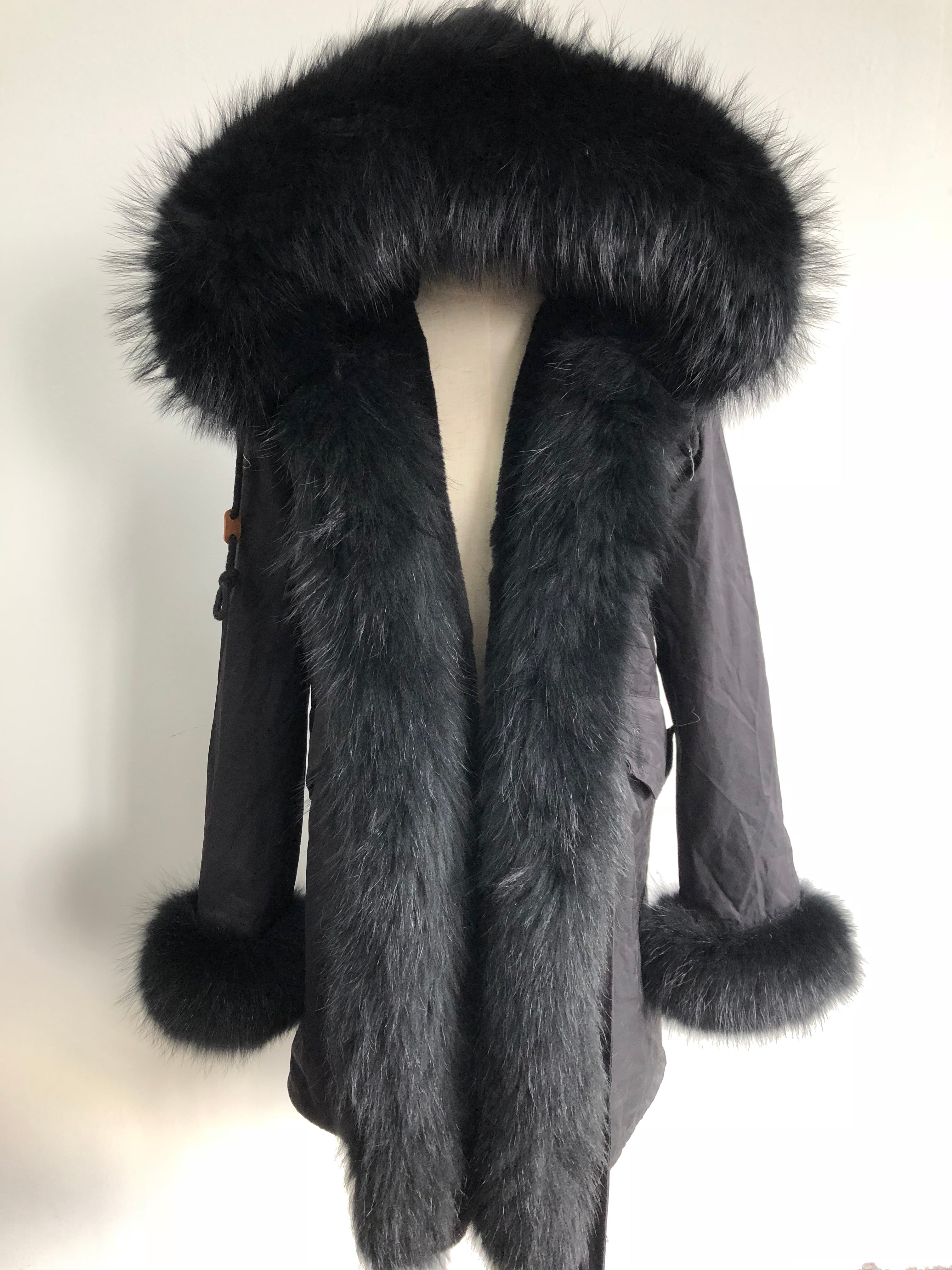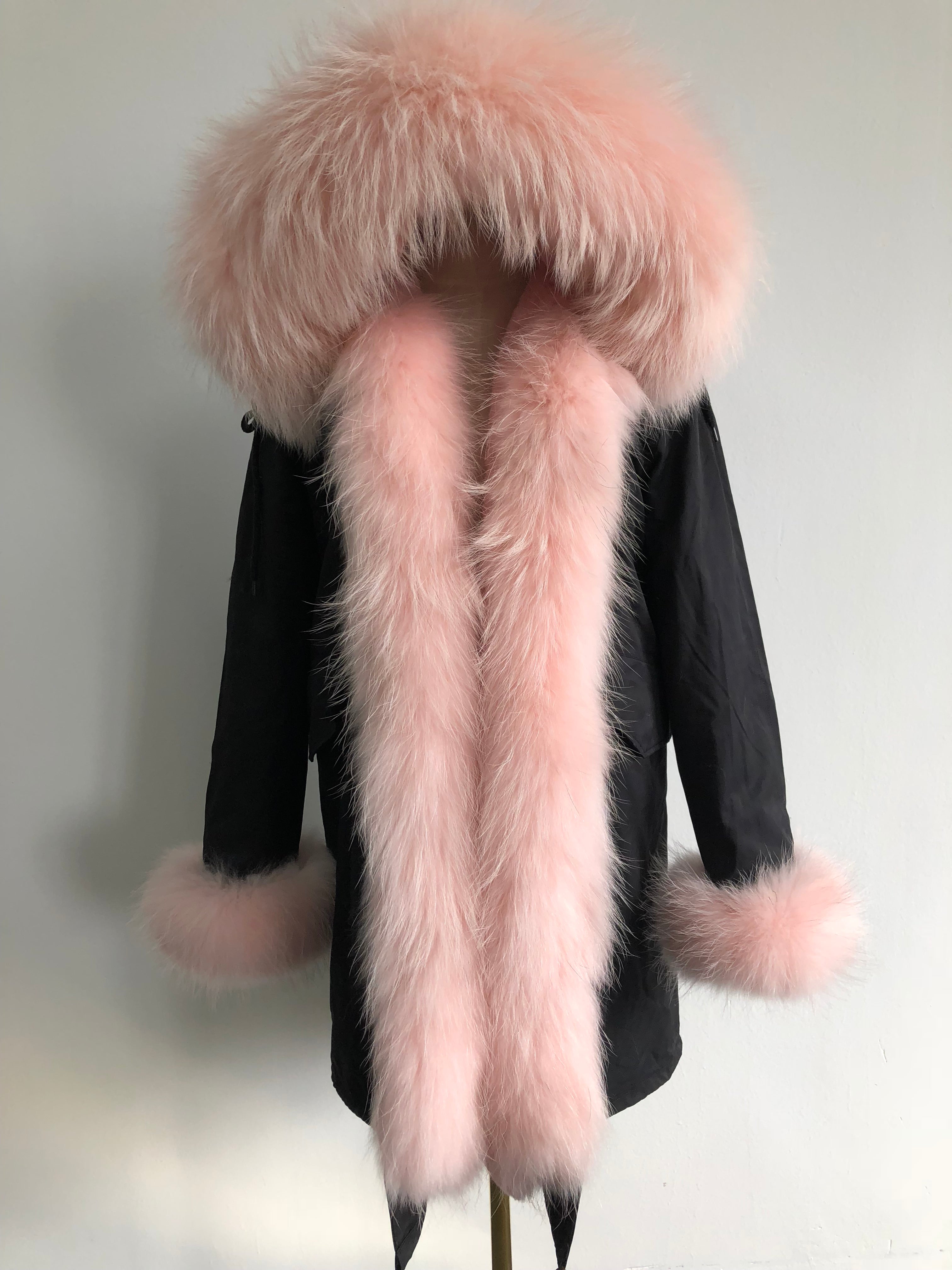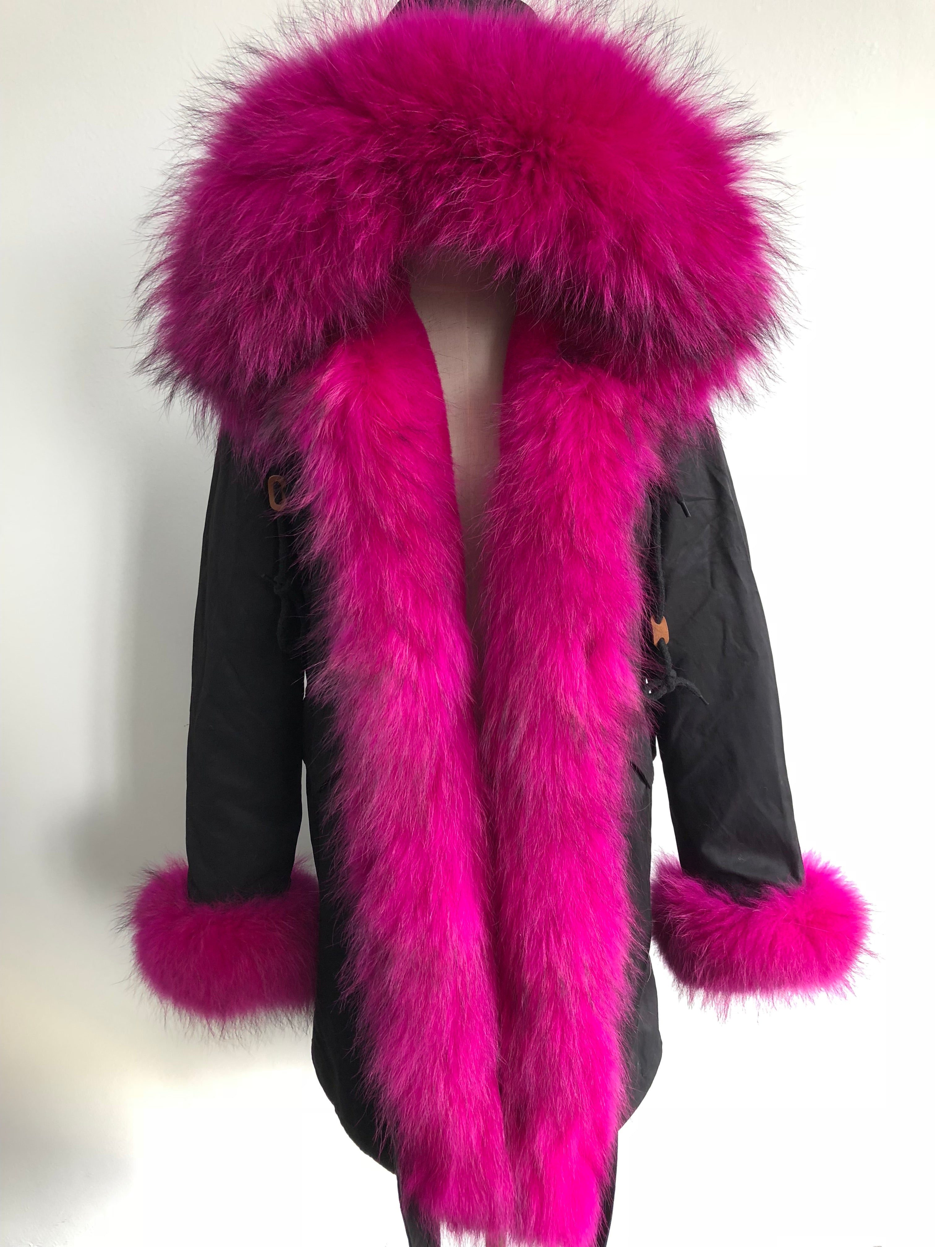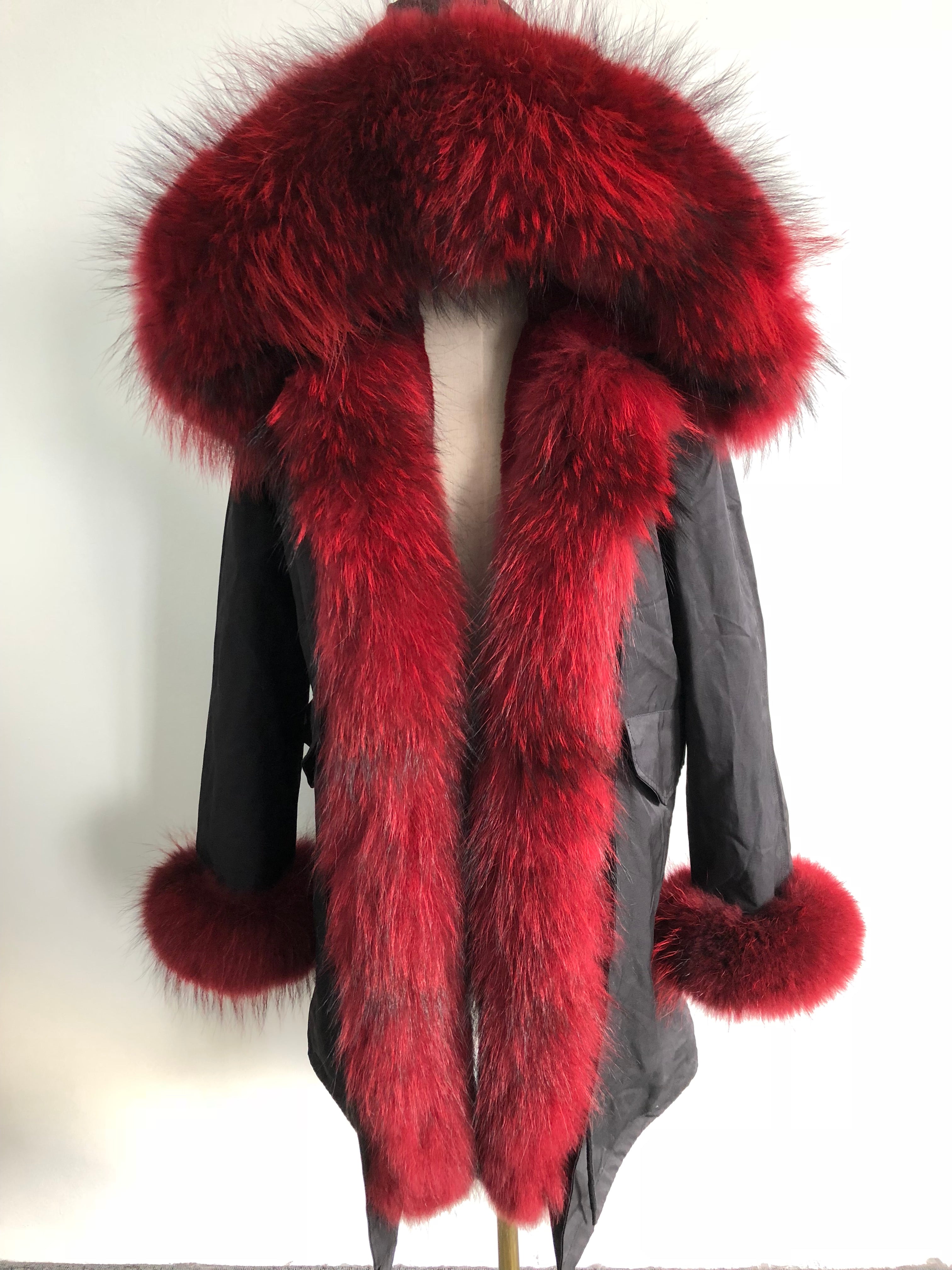 Long Camouflage Parka with Raccoon Fur Trim – Hooded Winter Coat for Women, Full-Length Raccoon Fur Collar & Cuffs, Warm and Luxurious Outerwear