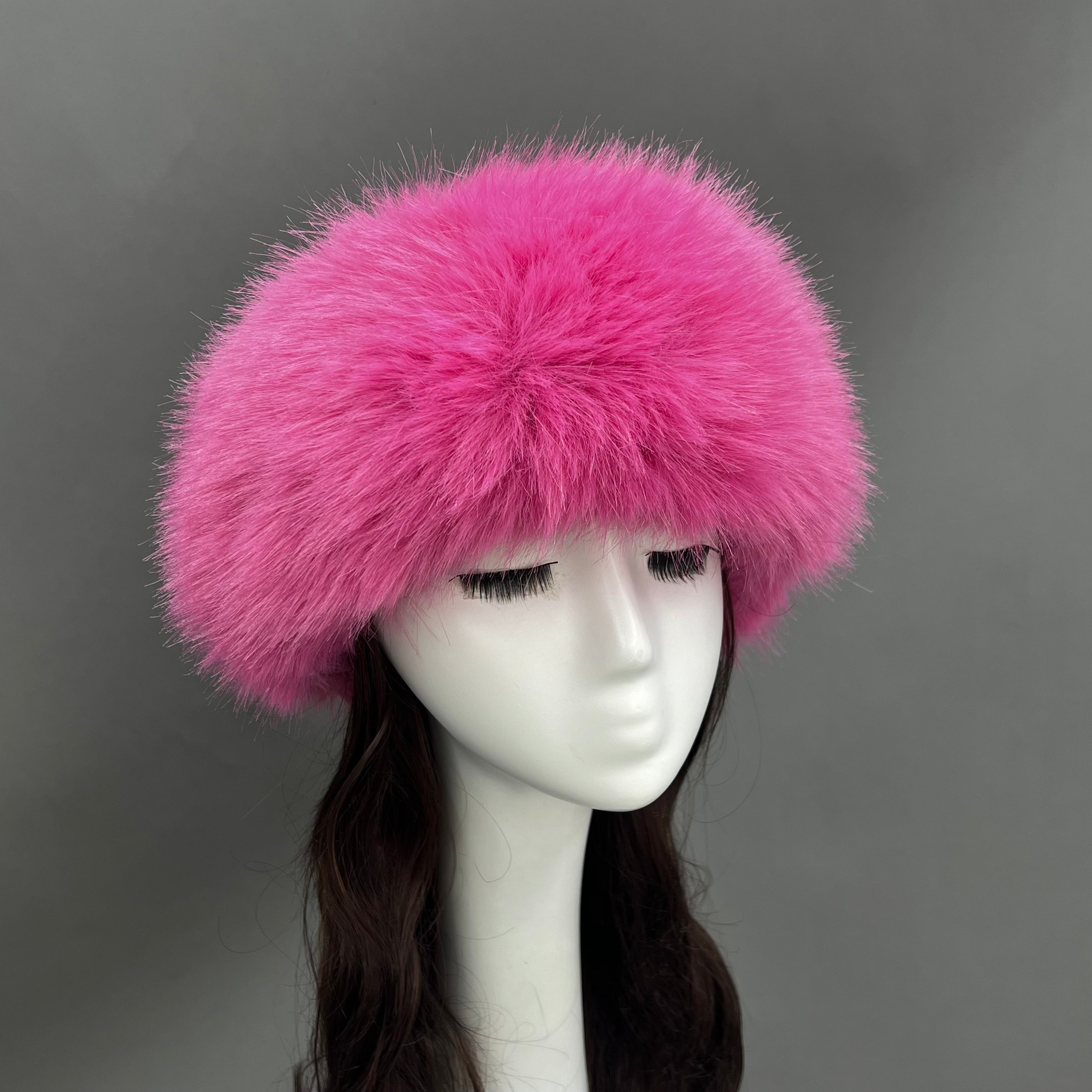 Luxury Burgundy Faux Fur Hat for Women – Warm Winter Headwear, Fashionable Pom Pom Style, Soft & Stylish False Hair Cap