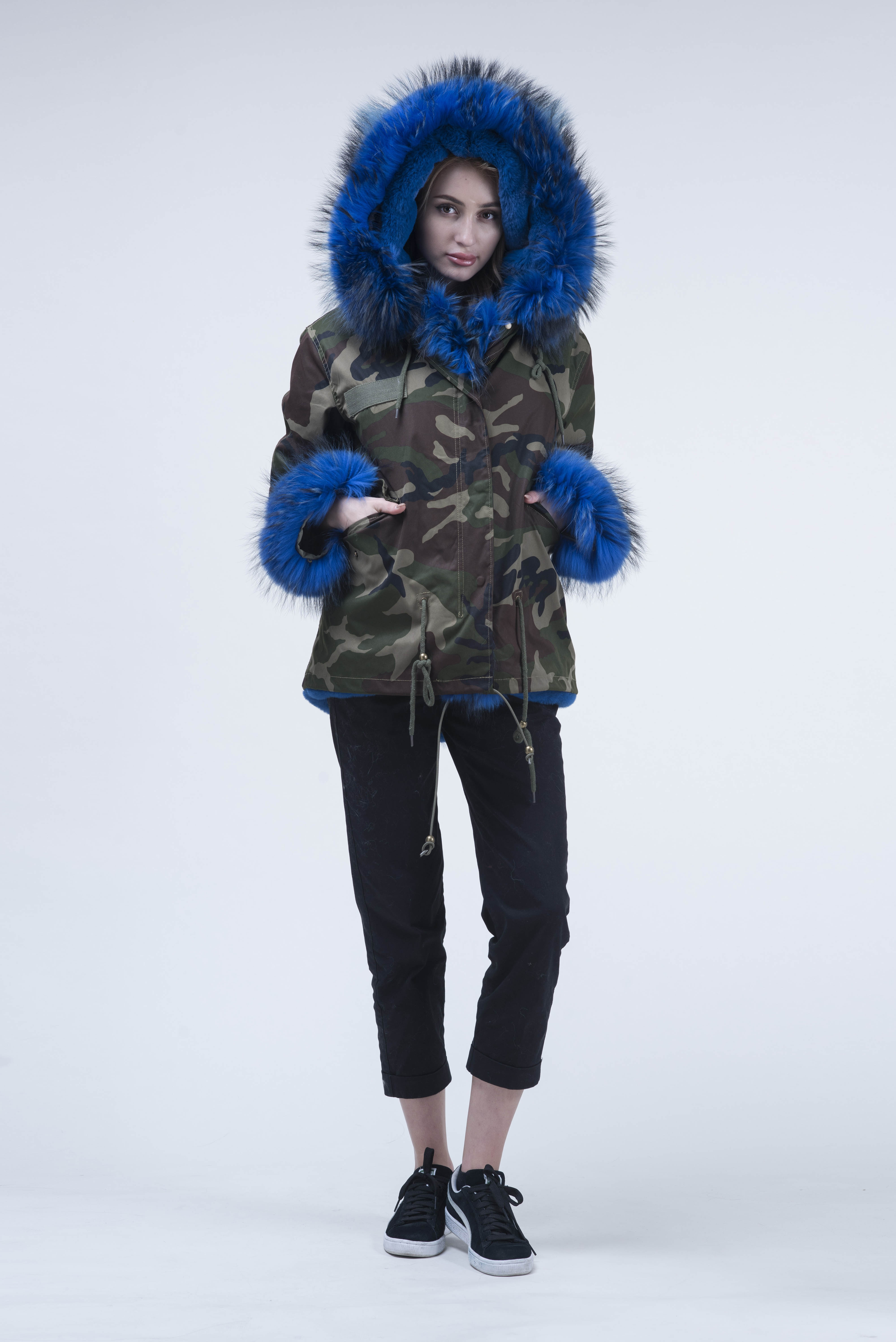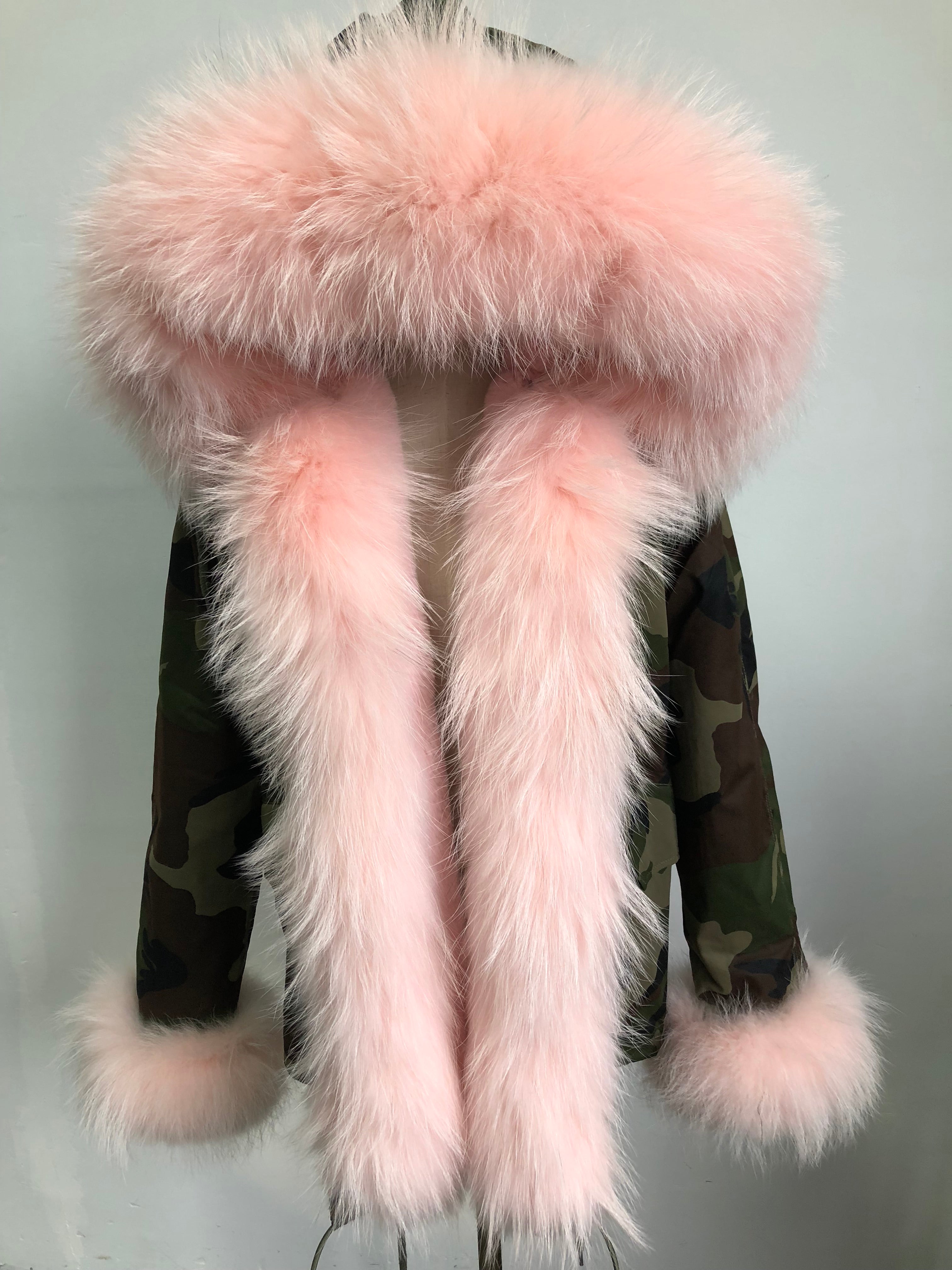 Short Parka with Pink Raccoon Fur Trim – Hooded Winter Coat for Women, Faux Fur Lining & Cuffs, Warm and Stylish Outerwear