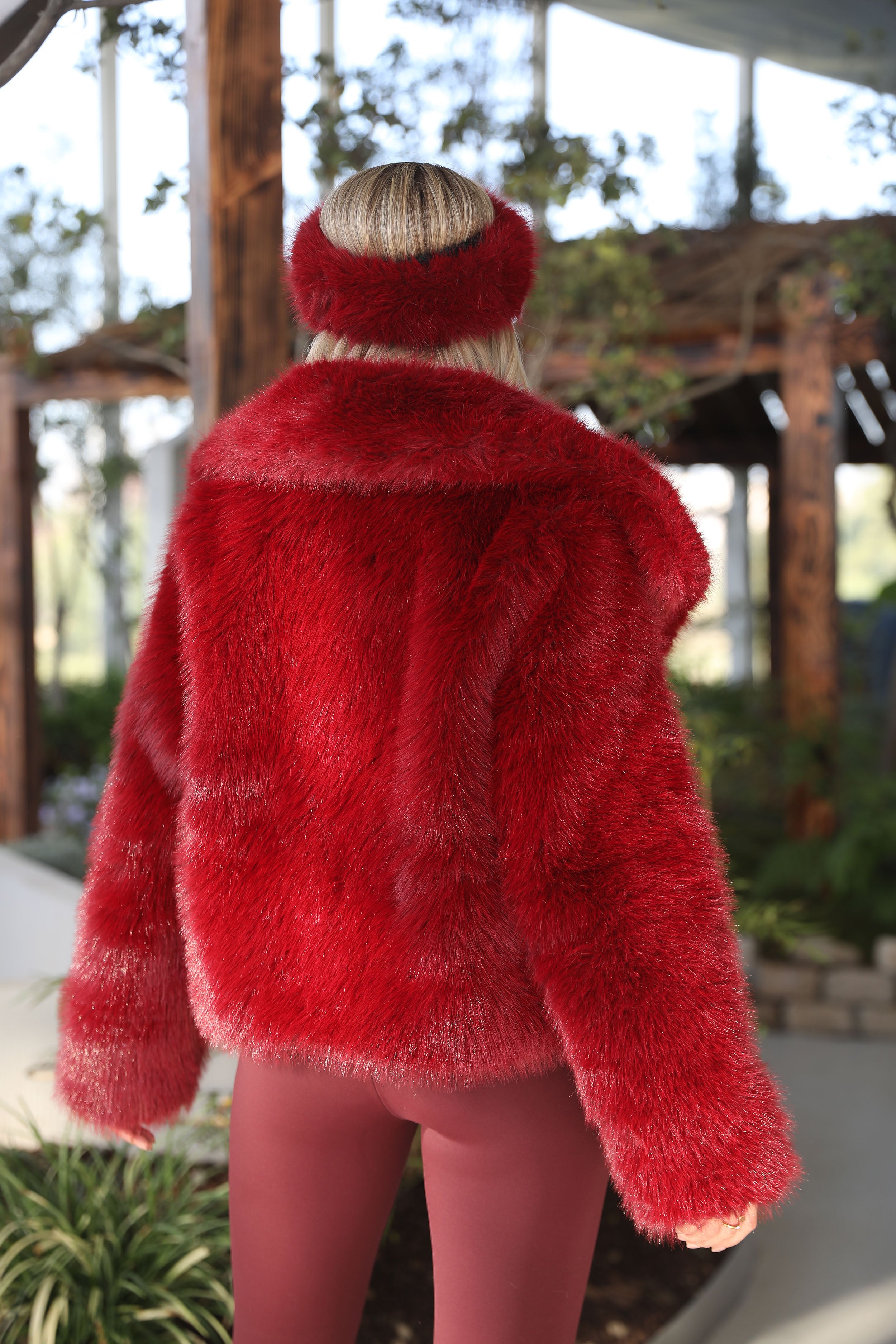 Women’s Burgundy Faux Mink Fur Jacket – Short Collar Coat for Elegant Winter Fashion