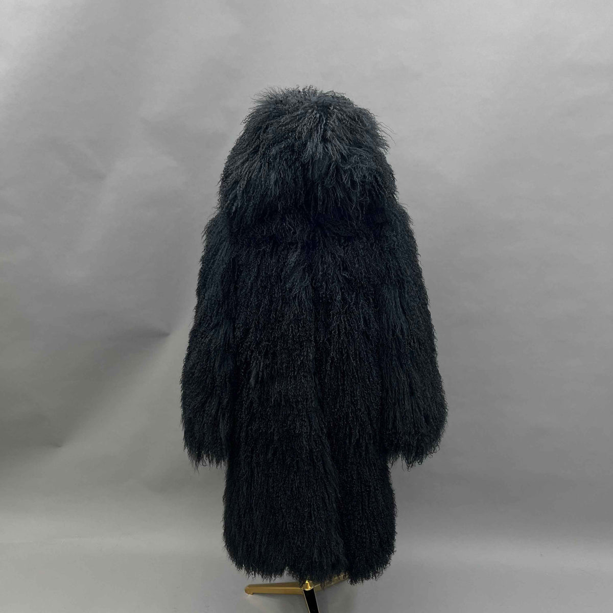 Women's Hooded Black Mongolian Lamb Fur Coat – Mid-Length, Curly Hair, Stylish Winter Outerwear for Women