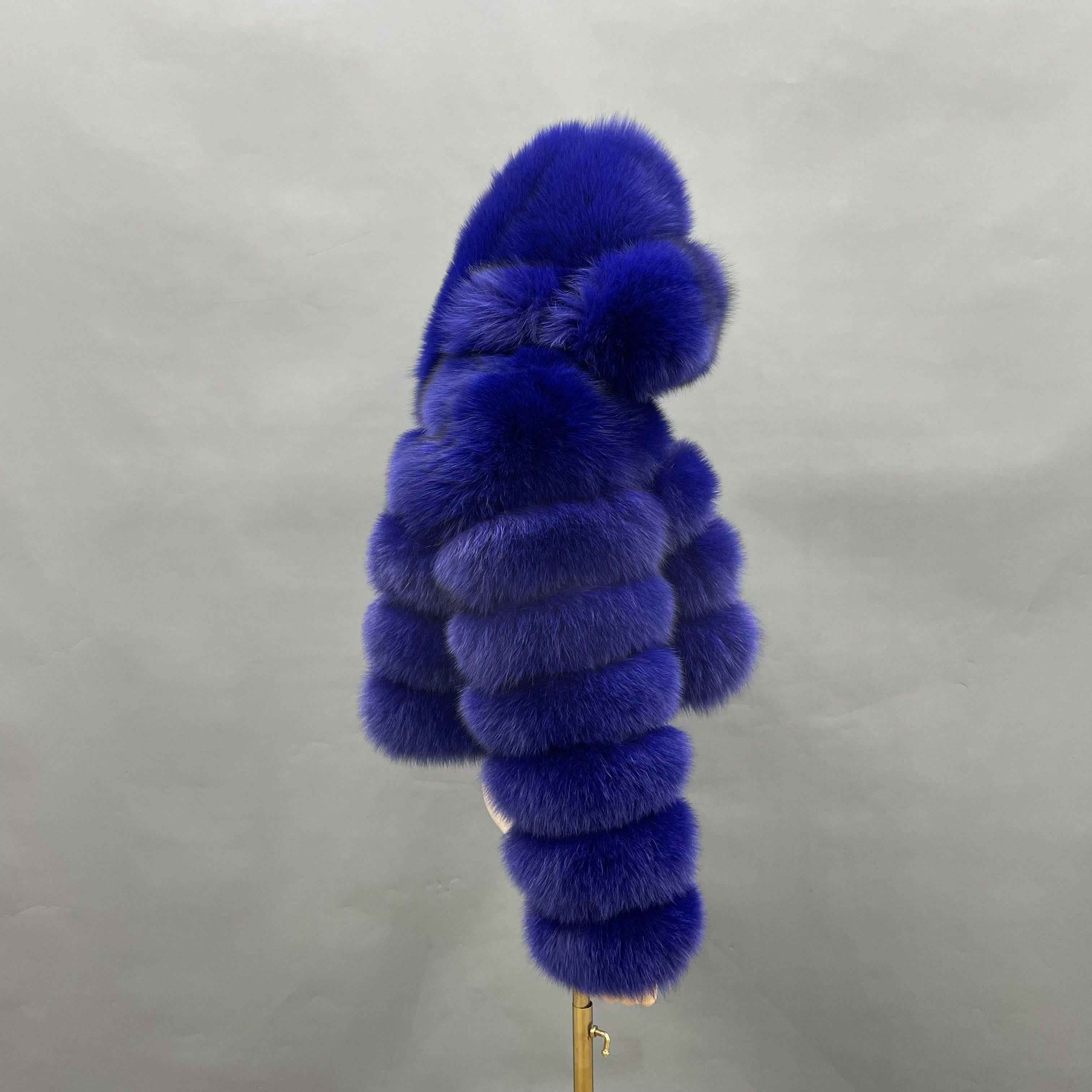 Women's Premium Fox Fur Cropped Hooded Jacket - 3-Panel Body & 6-Panel Sleeves with Zipper Closure Winter Fashion Warm Coat