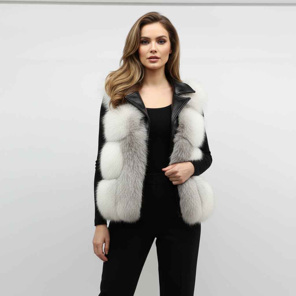 Women's Luxury Fox Fur Vest - Notched Lapel Elegant Outerwear