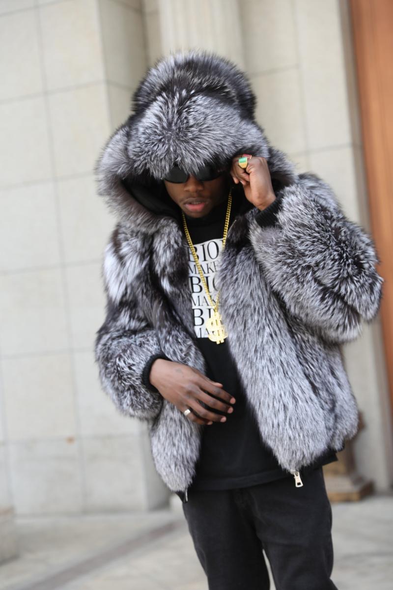 Coat With Ribbed Hem and Cuffs Hooded Made Of Fox Fur
