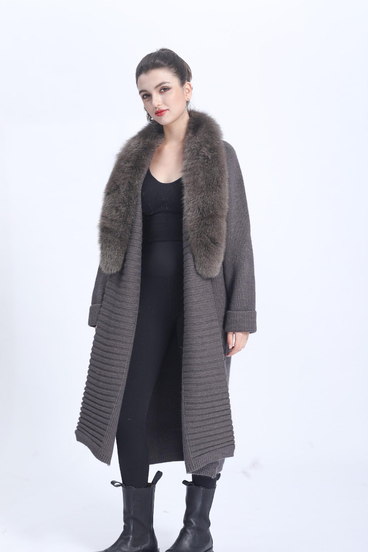 Ladies' Wide Lapel Belted Knitted Sweater Spring Knit Cardigan Long Outerwear