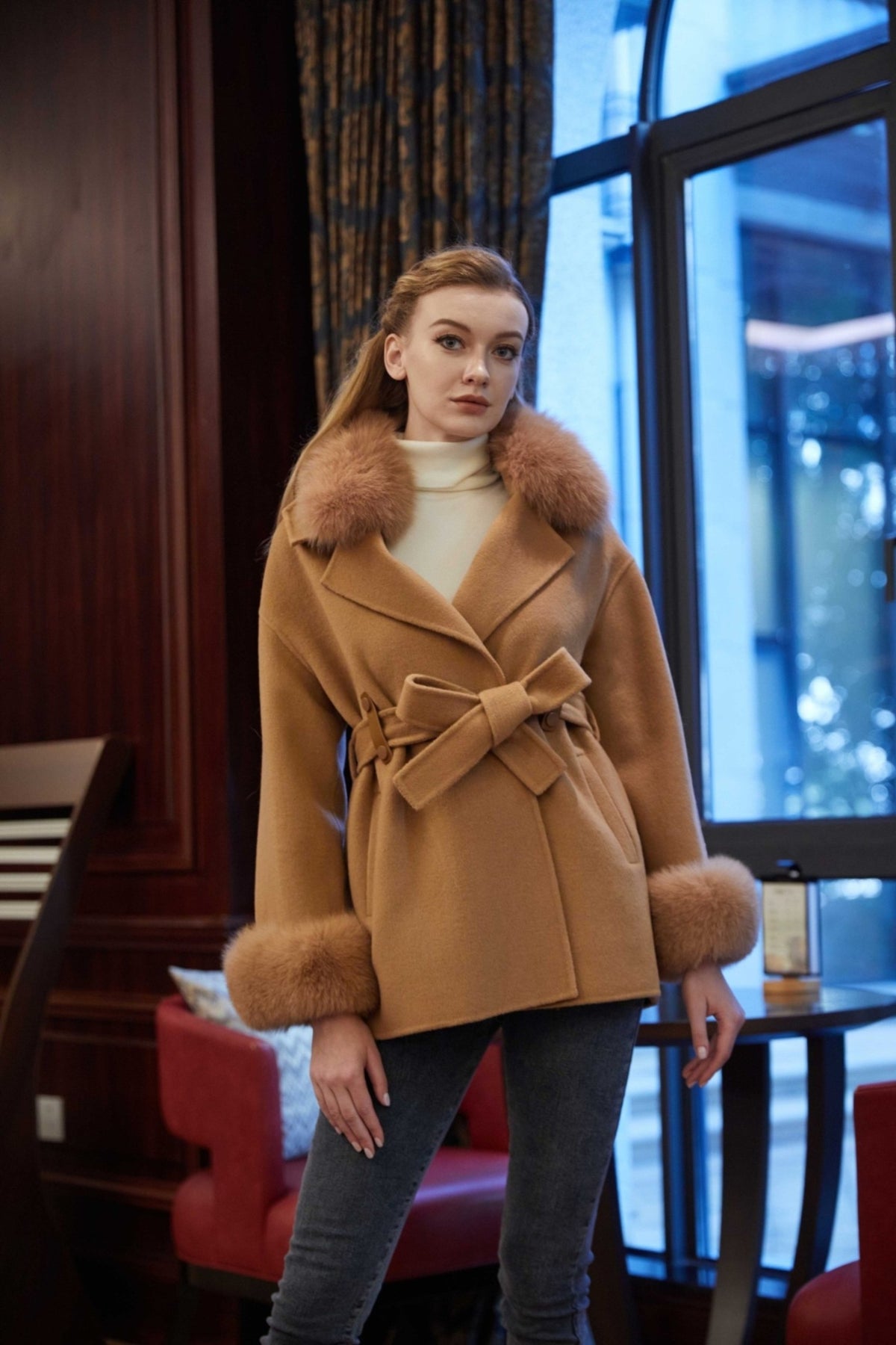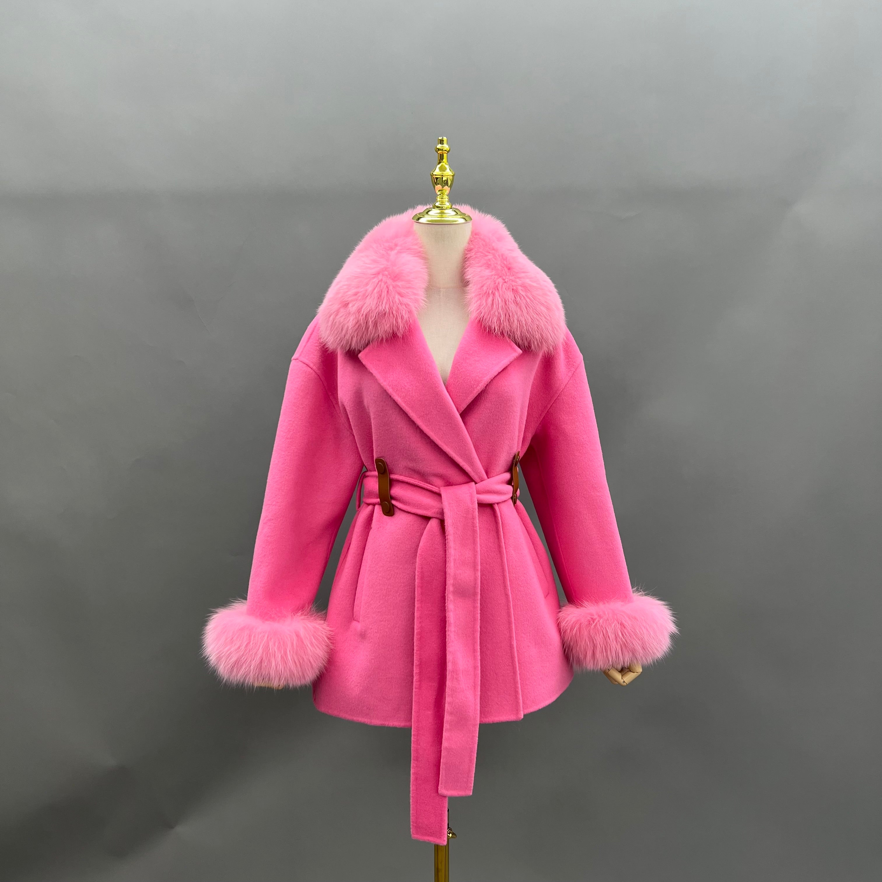 Trendy New Style Fox Fur Collar Short Cashmere Coat For Women