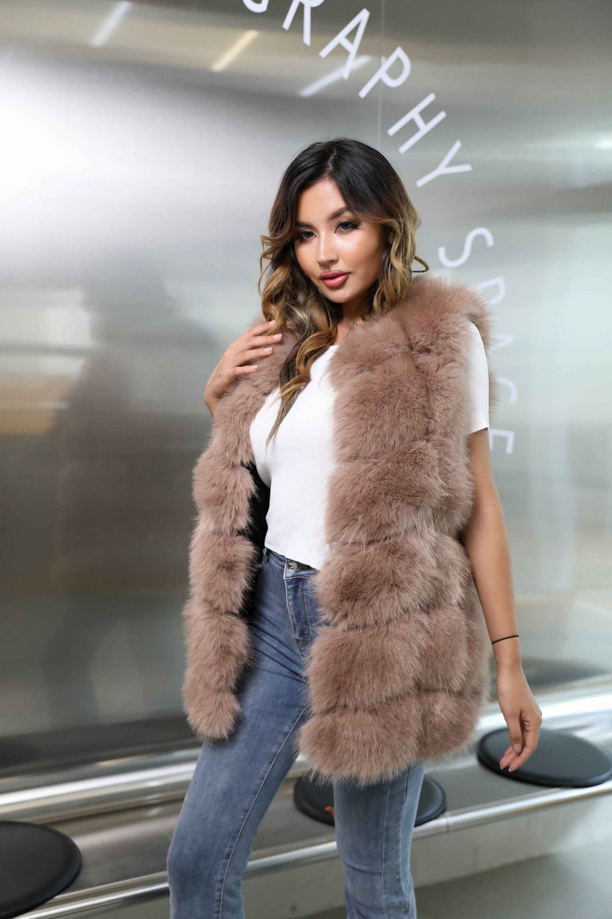 Women's 6-Panel Puffer Style Faux Fur Vest - Luxury Trendy Winter Essential Outerwear