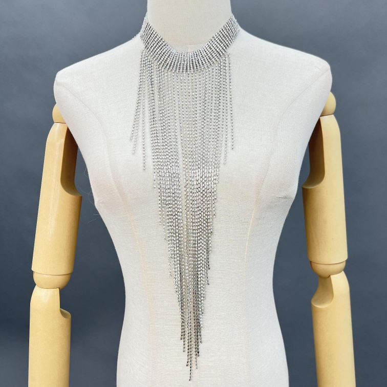 Long Tassel Crystal-Studded Luxury Necklace Body Chain Shiny Jewelry