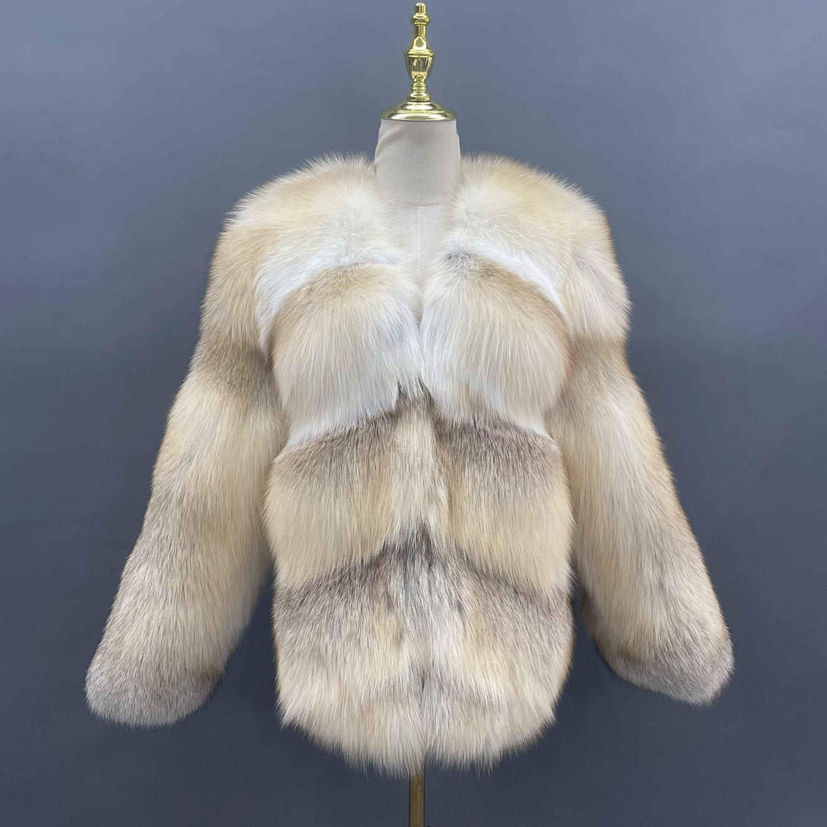 Women’s Golden Island Fox Full-Pelt Jacket – Elegant V-Neck Coat in Natural Fur for Luxury Winter Fashion