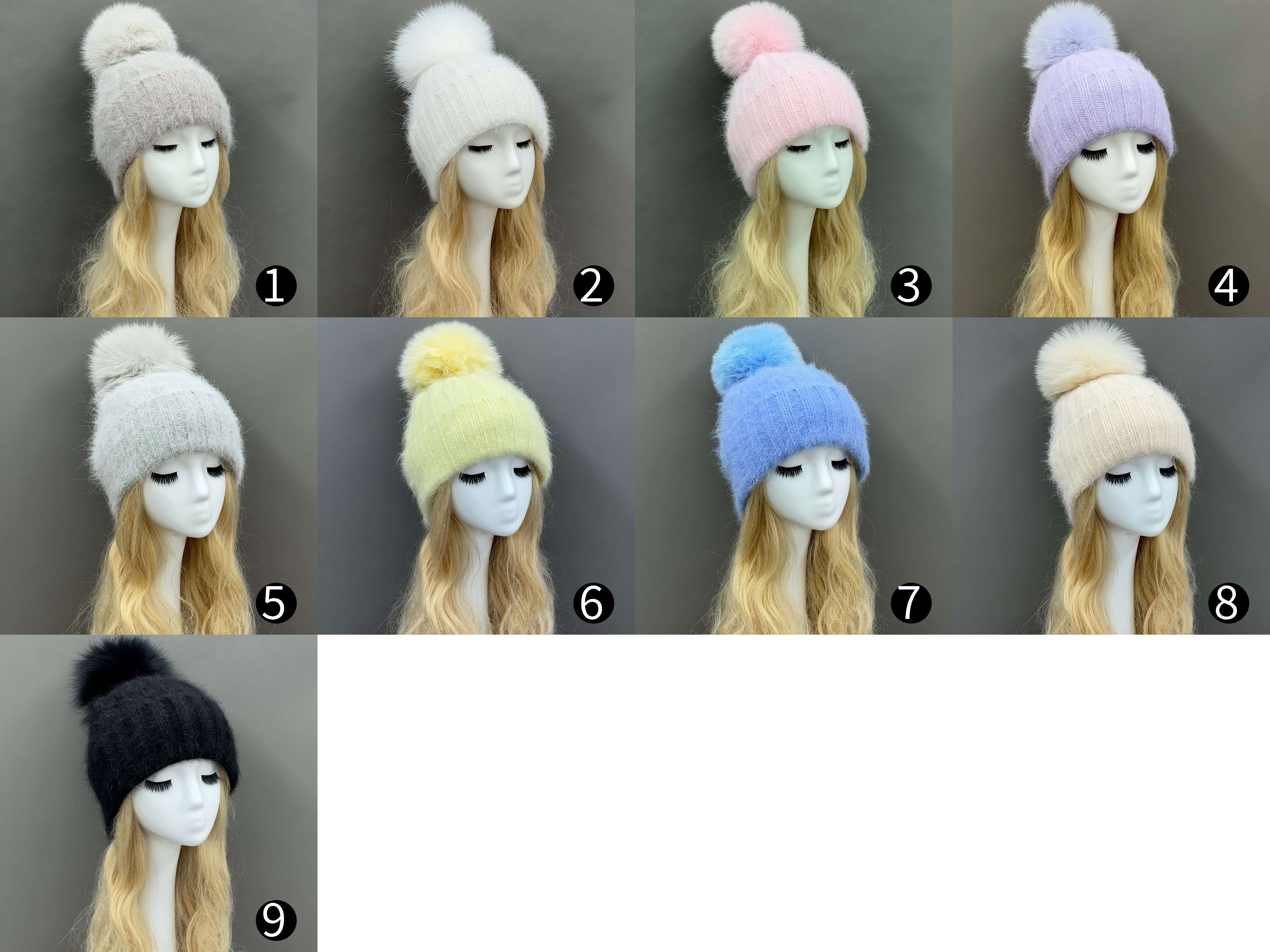 Women’s Light Pink Angora Knit Beanie with Reverse Fur Texture – Soft Winter Hat for Cozy Fashion